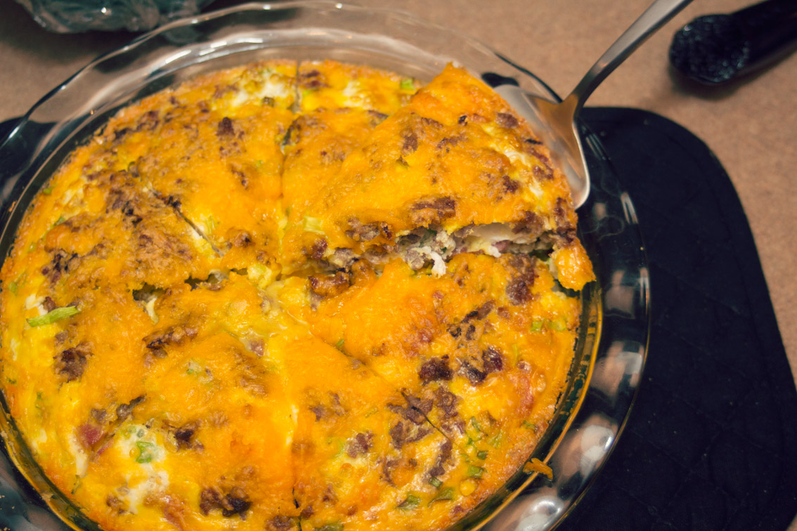 The Bachelor’s Breakfast Quiche (pronounced “Keesh”) is an excellent mixture of all your breakfast proteins, with a crust of hash-browns. It’s like a grand-slam meal all baked in a pie dish.