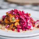 - While you’re waiting on the fish to finish, roughly chop some red cabbage and dump it in a bowl with the juice from your lime. Add a pinch of salt. Mix well.