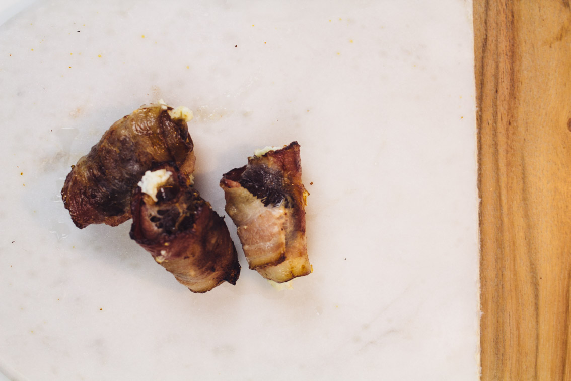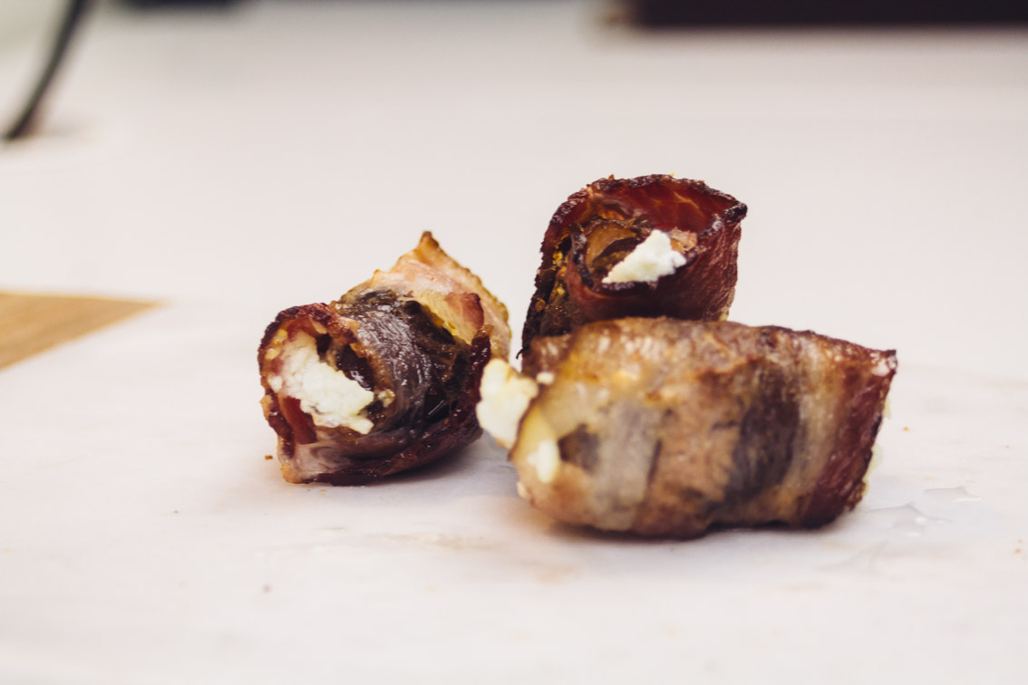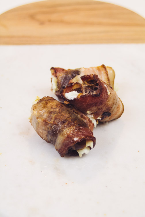 Need a fancy appetizer that ‘s easy to make? Stop showing up to parties with “pigs in a blanket”, and upgrade your game with this fancy hors-d’oeuvre. These dates are also great for a romantic “date” [pun]!