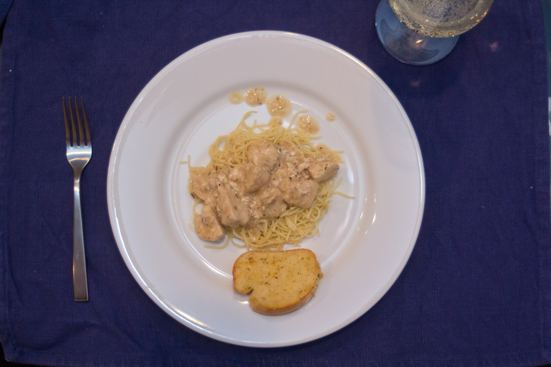 - Toast the garlic bread and serve it warm with the chicken & sauce over the pasta.