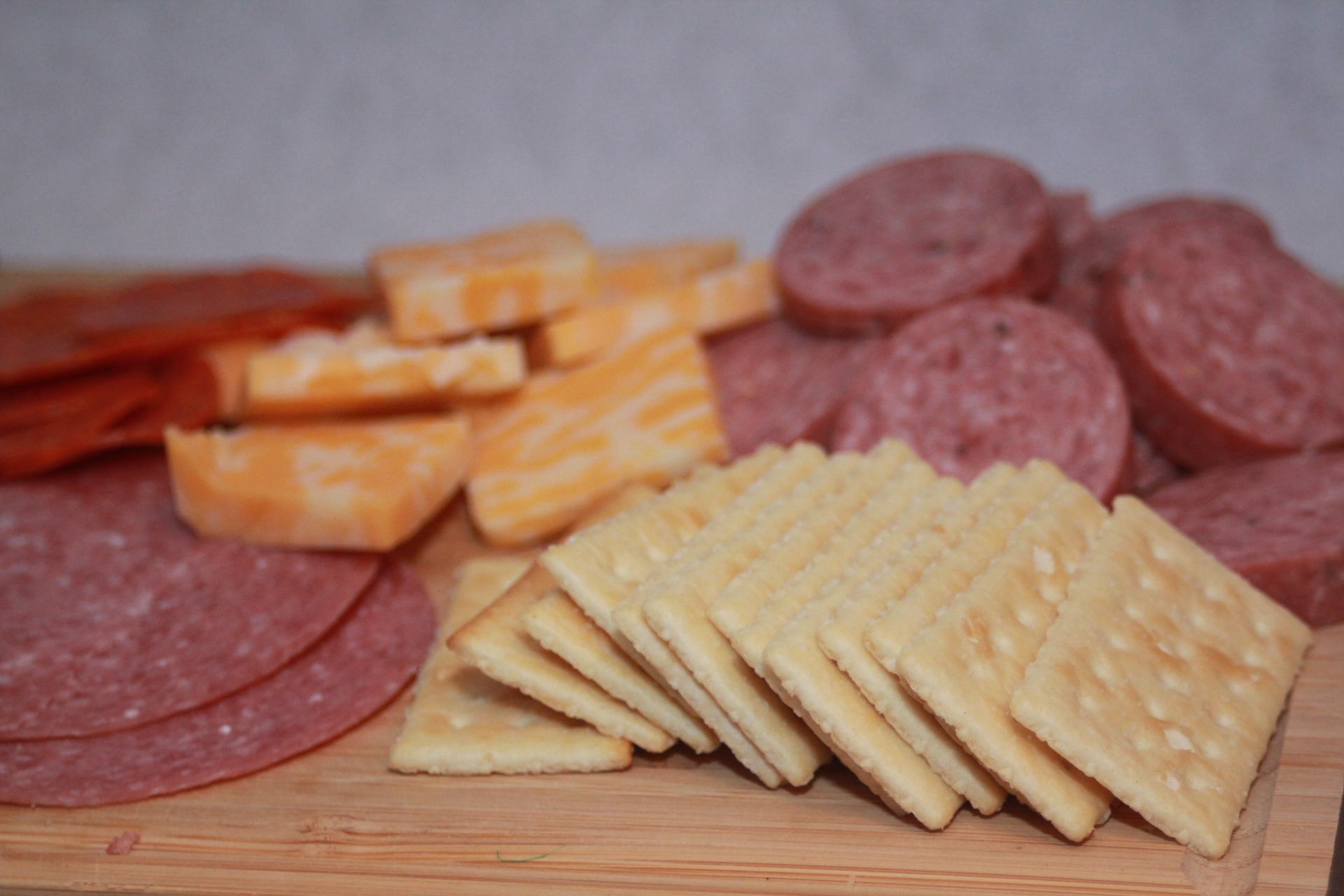 - You can use any type of cracker with any type of meat with any type of cheese–so experiment a little and find what you like. These just happen to be what I had lying around the fridge, and they tasted pretty good (except for the summer sausage).
