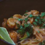 - If your shrimp is pre-cooked and cold, throw them in with the noodle pan in the last minute or so. If the shrimp is not-cooked, mix in with the noodle pan several minutes before you’re finished so they can cook.